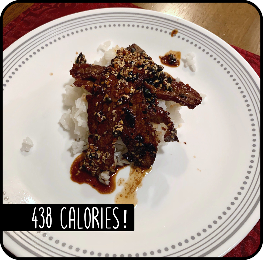 The bulgogi is 232 calories for 1/4 of it. For one cup of rice, it’s 206 calories. The meal would total 438 calories, without vegetables (I was crunched on time). I had a lot of trouble finding a place that sells Flank Steak, but I called Mannino’s in Wentzville and they had it for $7.99 a pound. I was expecting it to cost more, because this is really good quality beef!