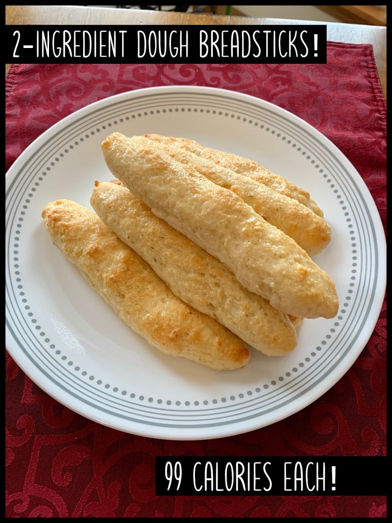 I tried another recipe from the 2-Ingredient Dough list! These are really good! Though I think I might put cheese in or on them next time. Just 1-2 Tablespoons of Kraft Mexican cheese (this is my favorite shredded cheese, I use this on almost everything) is either 25 or 50 extra calories, and these breadsticks are only 99 calories a piece!