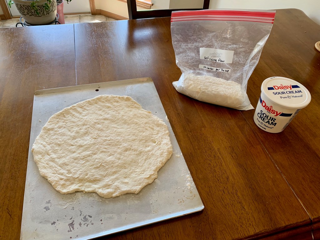 So, I’ve been experimenting with different variations of 2-ingredient doughs. As awesome as the Greek Yogurt version is because of the nutritional values in the yogurt, I’m honestly not a huge fan of the flavour it brings to the bread. So, I did research on alternatives to the Greek Yogurt and came across a lot of recipes that use Sour Cream. I’ve tried different measurements of ingredients and found just the right balance of flour and sour cream. I’m going to include how to create self-rising flour in case you can’t get hold of it during these crazy times (I can’t find it anywhere, and have a hard enough time even finding all-purpose flour).