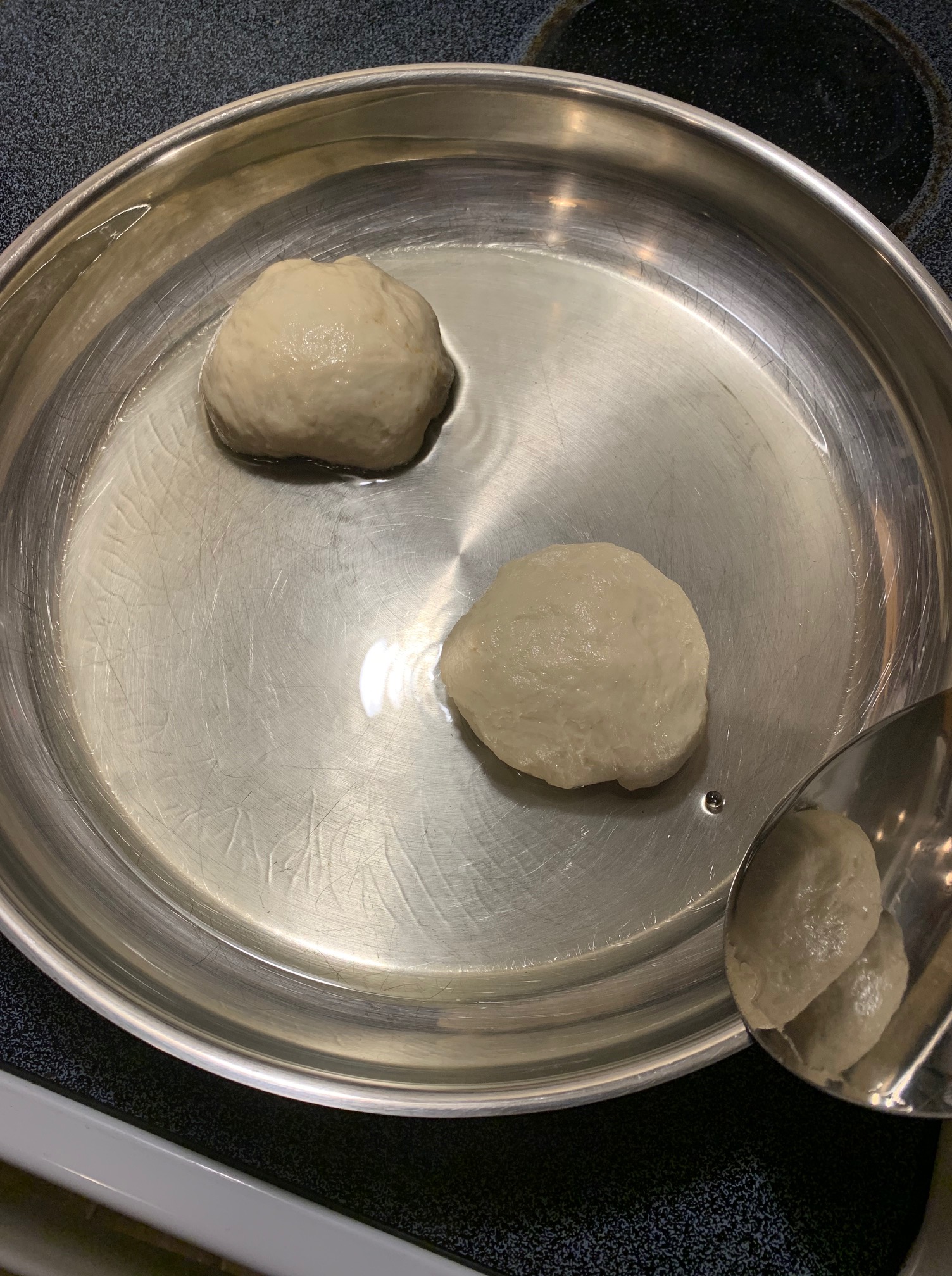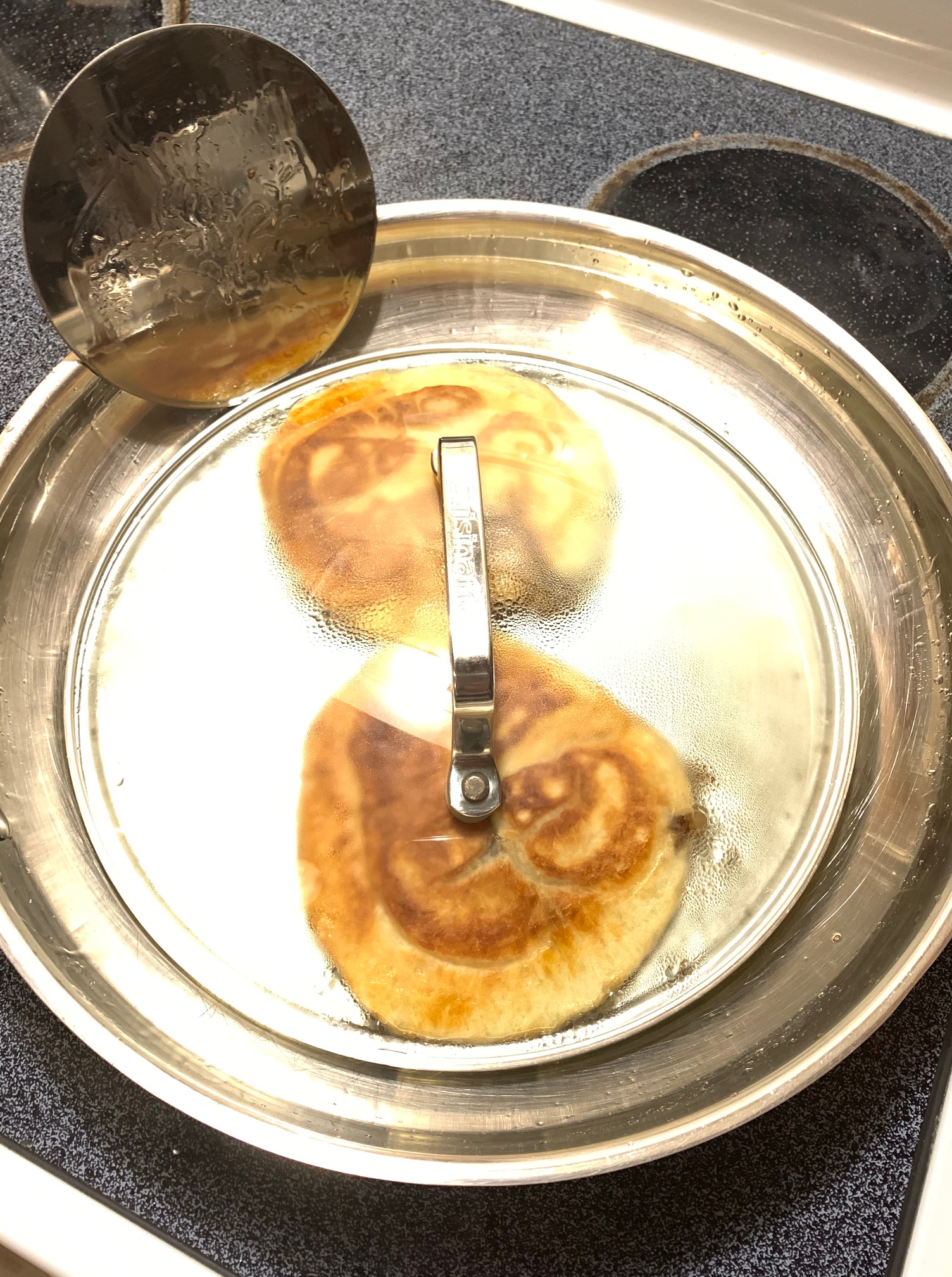 - Once dough is ready begin heating a large skillet with a thick layer of canola oil over medium-high heat